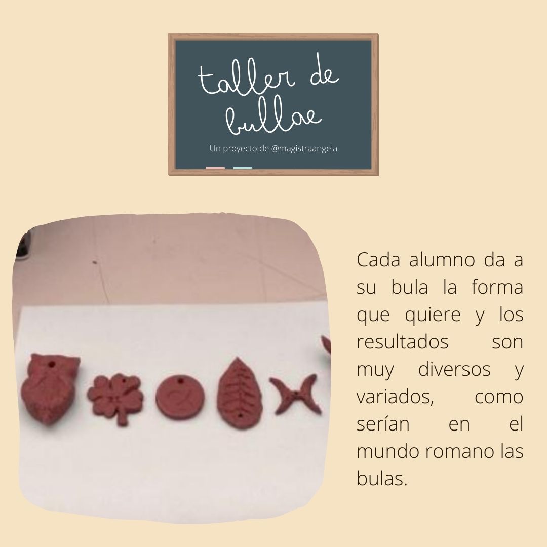 Una forma de tratar este tema que me ha gustado mucho es la de Ángela Moraga (@magistraangela), nuestra mentora de la Universidad de Salamanca. Ella en sus clases elabora un proyecto muy interesante para dar a conocer este objeto de la vida cotidiana romana, pero también para dar la bienvenida a un nuevo curso: les explica a sus alumnos para qué eran las bulas y posteriormente cada uno de ellos elabora su propia su bula con FIMO, arcilla o incluso cerámica de secado al aire y se convierte en su amuleto el nuevo curso.
